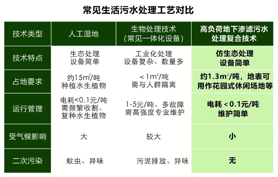 “高負(fù)荷地下滲濾技術(shù)”作為仿生態(tài)技術(shù),在保留了“傳統(tǒng)地下滲濾”傳統(tǒng)地下滲濾主要優(yōu)點(diǎn)的同時(shí),克服了生化處理技術(shù)設(shè)備多、能耗高、需要專(zhuān)業(yè)維護(hù)等主要缺點(diǎn);同時(shí)又解決了生態(tài)處理技術(shù)占地面積大,冬季無(wú)法正常運(yùn)行的重大缺陷。