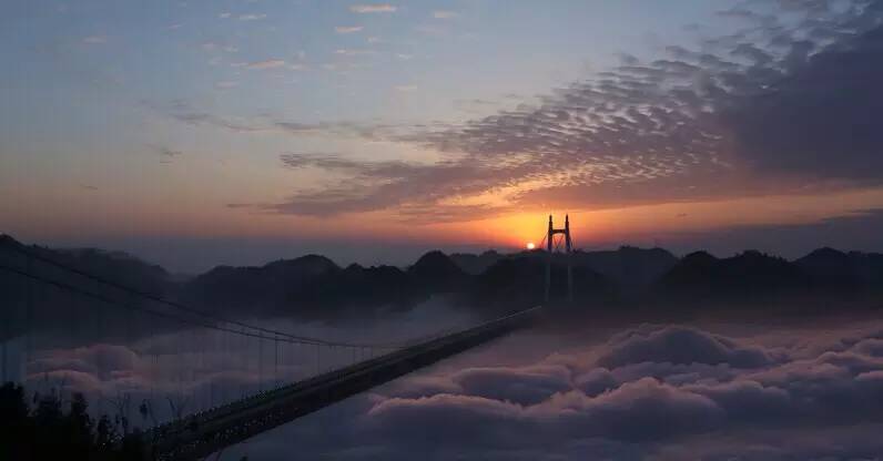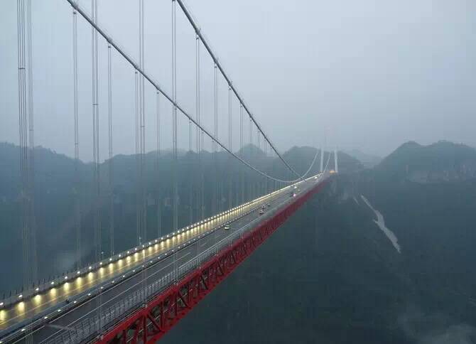 矮寨特大懸索橋,位于湖南湘西矮寨鎮(zhèn)境內(nèi)。矮寨懸索橋,距吉首市區(qū)約20公里,跨越矮寨鎮(zhèn)附近的山谷,德夯河流經(jīng)谷底,橋面設(shè)計(jì)標(biāo)高與地面高差達(dá)330米左右,全長(zhǎng)1073.65m,懸索橋的主跨為1176m。該橋跨越矮寨大峽谷,主跨居世界第三、亞洲第一。