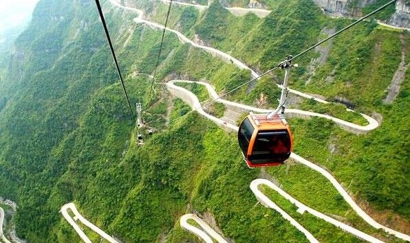 張家界天門(mén)山盤(pán)山公路有"通天大道"之稱(chēng),盤(pán)山公路全長(zhǎng)10.77公里,海拔從200米急劇提升到1300米,大道兩側(cè)絕壁千仞,空谷幽深,共計(jì)99個(gè)彎,180度急彎此消彼長(zhǎng),似玉帶環(huán)繞,彎彎緊連,層層迭起,被譽(yù)為“天下第一公路奇觀”。