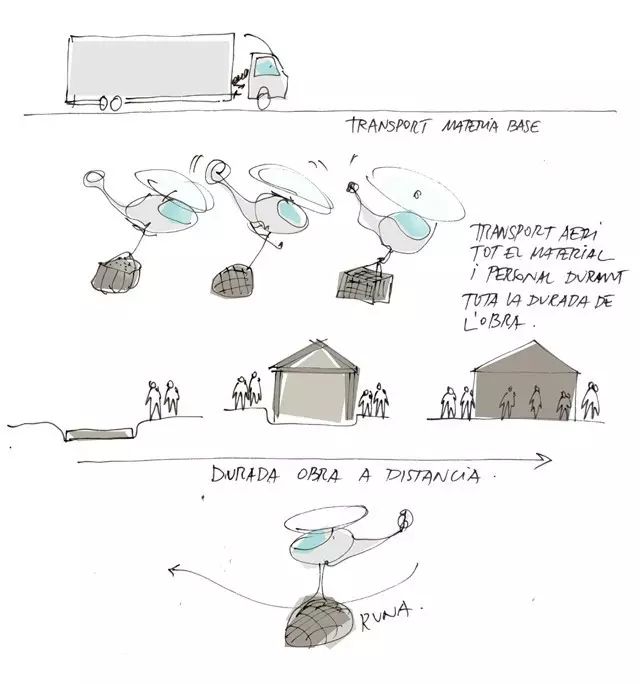 整個(gè)建筑空間注重特色與獨(dú)特性,因?yàn)榈貐^(qū)比較偏遠(yuǎn),只能運(yùn)用直升機(jī)來運(yùn)輸建筑材料,只能運(yùn)用一些輕質(zhì)的和預(yù)制材料。內(nèi)部空間的大部分元素選用的是預(yù)制的木質(zhì)材料,需要現(xiàn)場組裝完成。最終修建出的建筑,是傳統(tǒng)建筑高度的三倍,到建筑最終完成花費(fèi)了6個(gè)月。最終呈現(xiàn)的建筑,與原建筑幾乎做到了完全的分離。